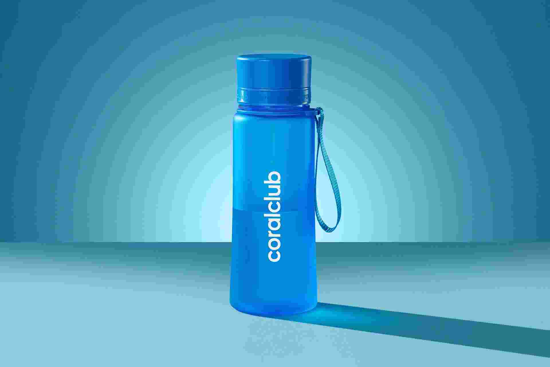 Прочная, экологичная и легкая бутылка Coral Club прекрасно подойдет для поездок, прогулок или занятий спортом.